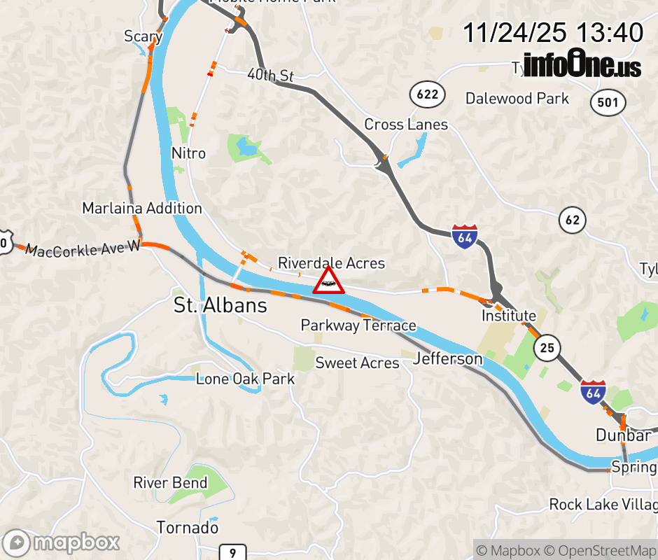 Vehicle Crash on WV-25 (1st Ave S) & Red Oak Dr in Nitro. ![]() |