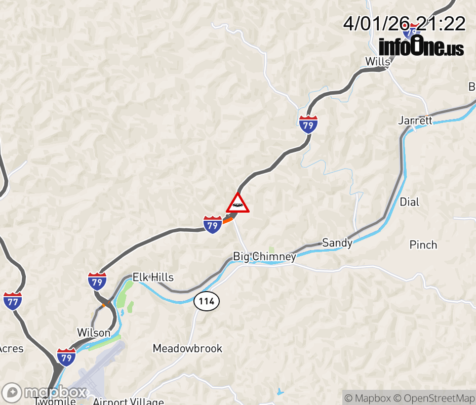 Vehicle Crash on I-79N at Mile Marker 5.6. Updated: Wed 4/1/26 9:22 PM EDT ![]() Updated: Wed 4/1/26 9:22 PM EDT |