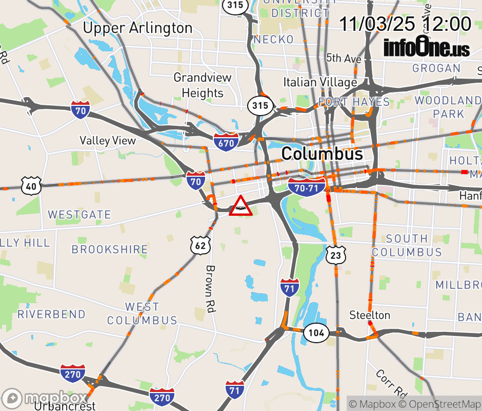 The right shoulder is blocked on I-70 West at Mound St, due to a crash. Updated: Mon 11/3/25 12:00 PM EST ![]() Updated: Mon 11/3/25 12:00 PM EST |