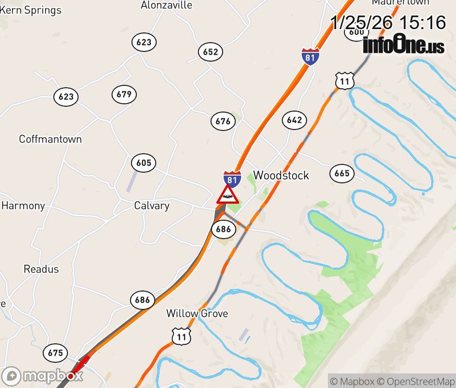 On I-81 at mile marker 283.6 in the County of Shenandoah, motorists can expect delays due to a tractor trailer crash. All north lanes are closed. Updated: Sun 1/25/26 3:16 PM EST ![]() Updated: Sun 1/25/26 3:16 PM EST |