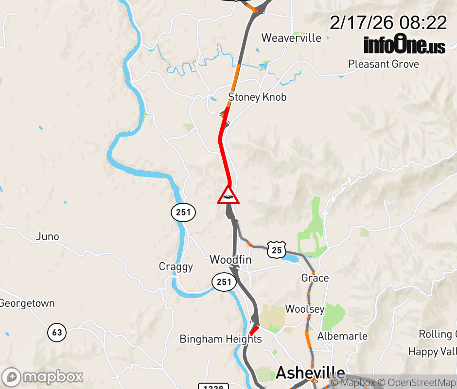 The left lane is closed at Exit 23, US-19 Bus, (Weaverville Road). ![]() |