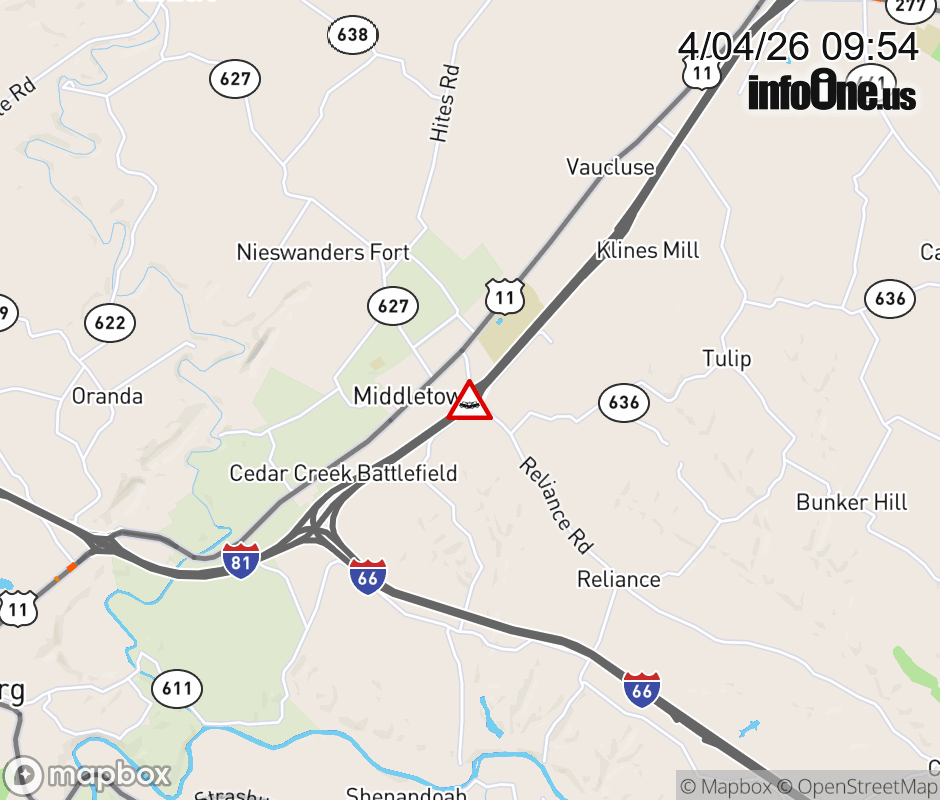 On I-81 at mile marker 302.3 in the County of Frederick, motorists can expect delays due to a vehicle crash. The south left shoulder is closed. ![]() |