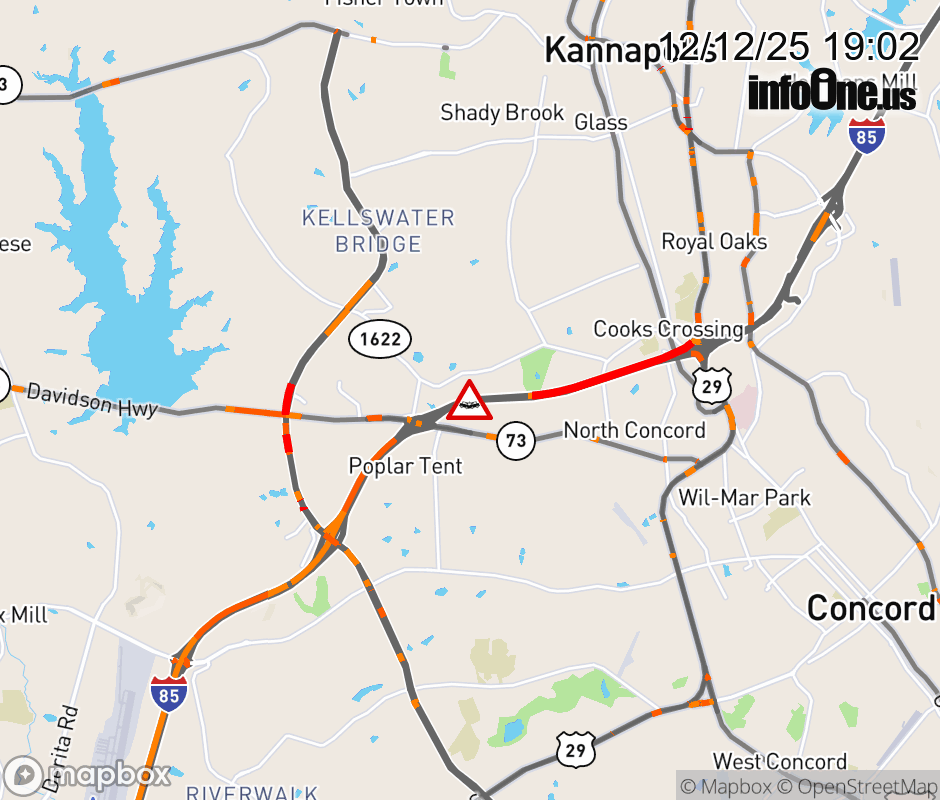 The two left lanes are closed before Exit 55 (NC 73). ![]() |