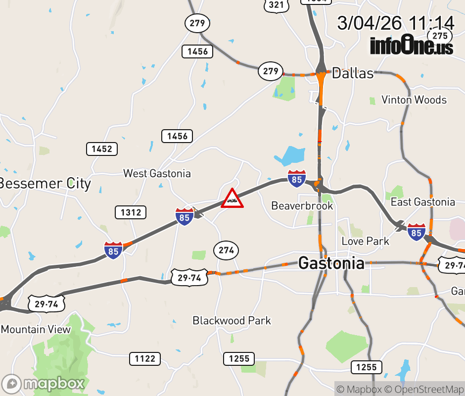 The left lane is closed before Exit 14 (NC 274). ![]() |