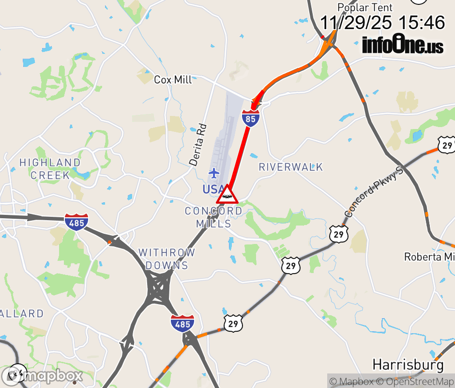 The right shoulder is closed before Exit 49 (Bruton Smith Blvd). Updated: Sat 11/29/25 3:46 PM EST ![]() Updated: Sat 11/29/25 3:46 PM EST |