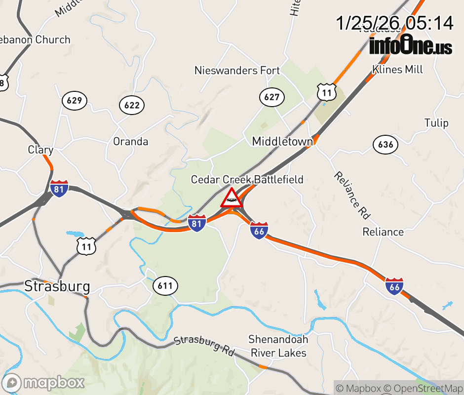 On I-81 at mile marker 300.5 in the County of Frederick, motorists can expect delays due to a tractor trailer crash. The south left shoulder is closed. Updated: Sun 1/25/26 5:14 AM EST ![]() Updated: Sun 1/25/26 5:14 AM EST |