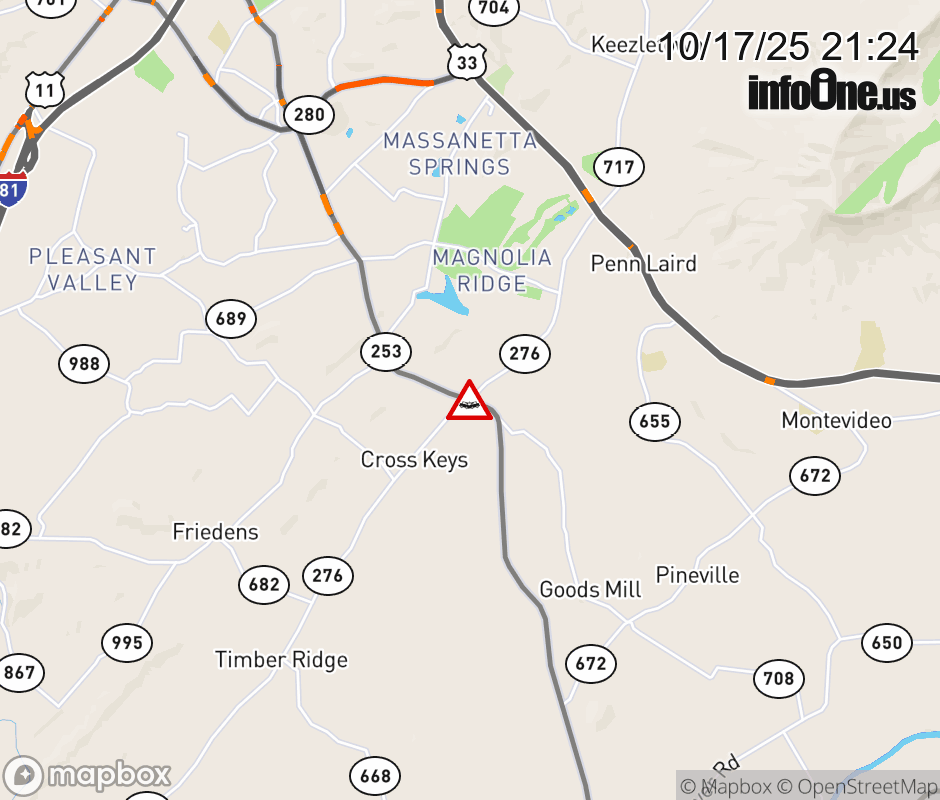 On VA-276 in the County of Rockingham, in the vicinity of Port Republic Rd; VA-253E/W, motorists can expect delays due to a vehicle crash. All south lanes are closed. ![]() |