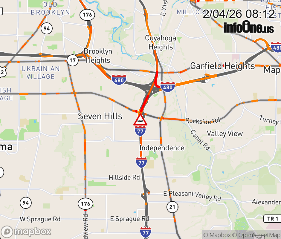 The left lane is blocked on I-77 North at Rockside Rd, due to a crash. ![]() |