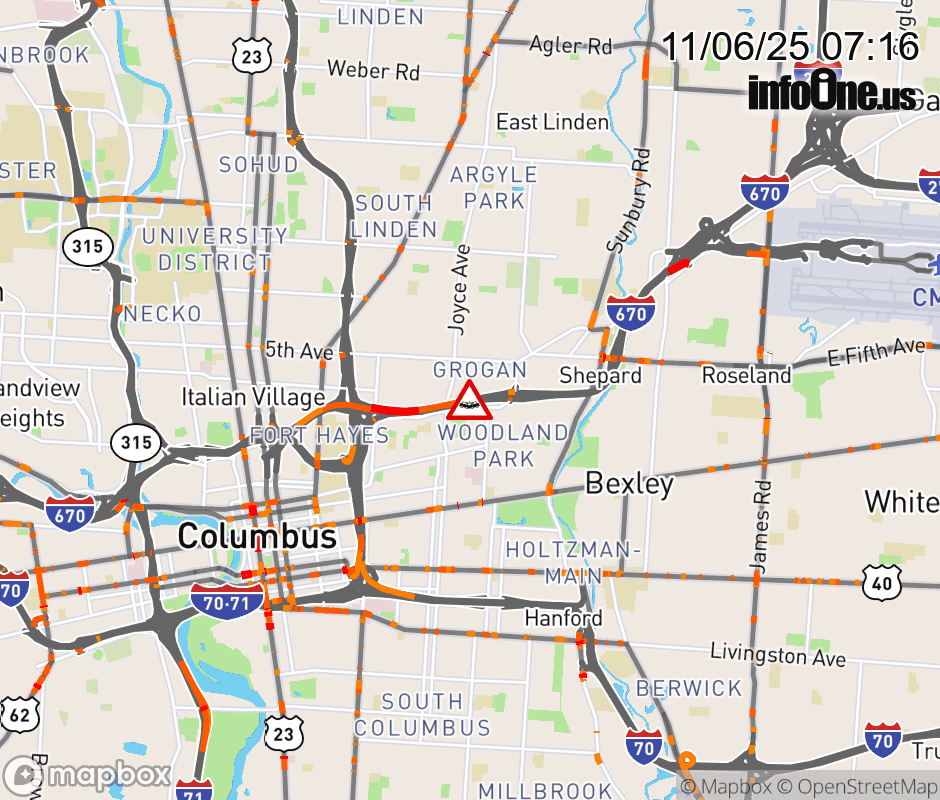 The left shoulder is blocked on I-670 West beyond Leonard Ave, due to a crash. ![]() |