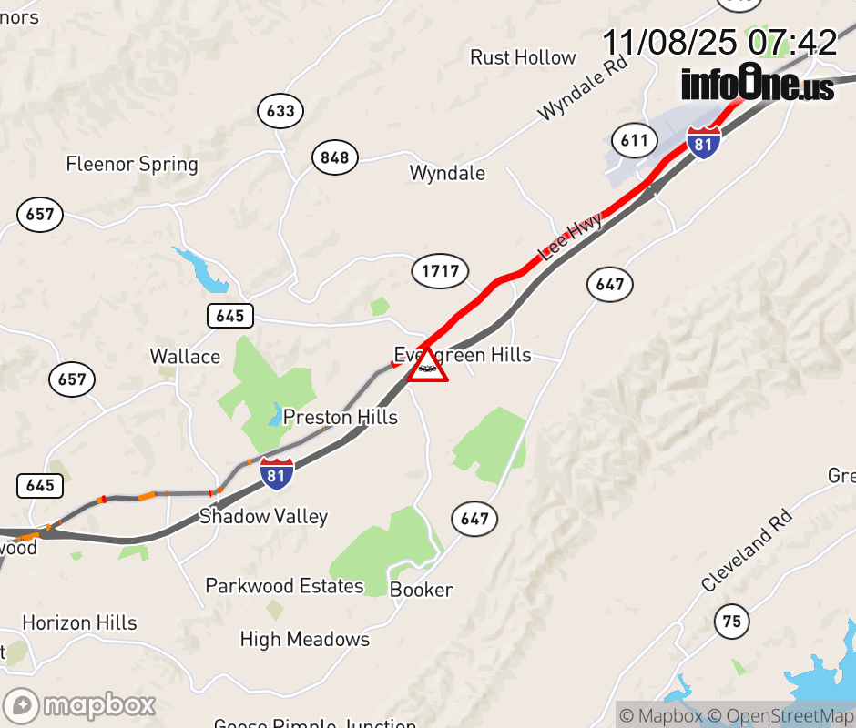 Canceled 11/8/25 7:50 AM Location: I-81N at MM 10.1, VA