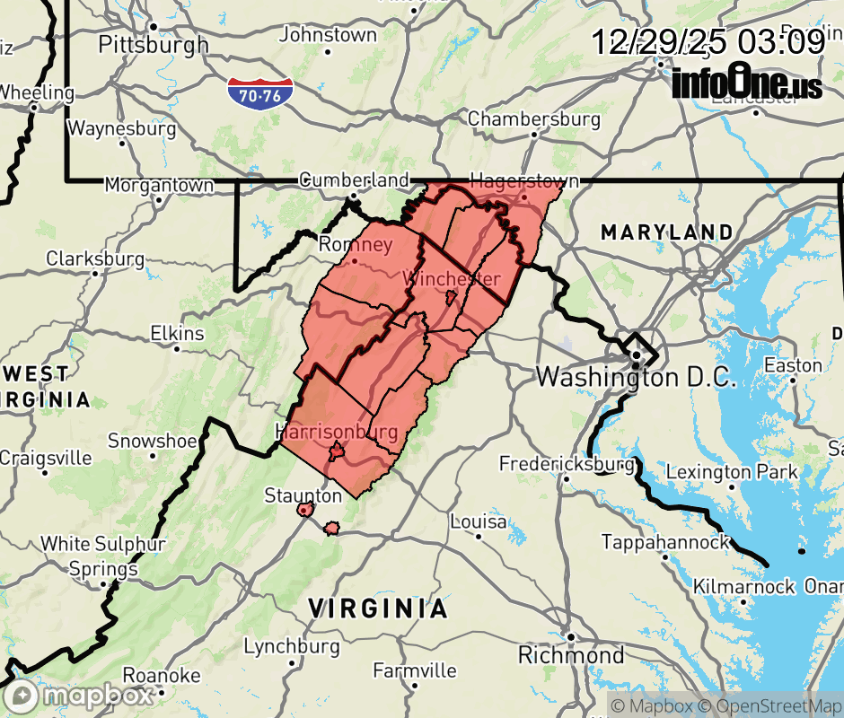 Canceled 12/29/25 10:59 AM Wind Advisory issued December 29 at 3:07AM EST until December 30 at 1:00AM EST by NWS Baltimore MD/Washington DC * WHAT... West winds 20 to 30 mph with gusts up to 55 mph expected. * WHERE... Portions of north central Maryland, northwest and western Virginia, and eastern and panhandle West Virginia. * WHEN... From 7 AM this morning to 1 AM EST Tuesday. * IMPACTS... Gusty winds will blow around unsecured objects. Tree limbs could be blown down and a few power outages may result. ![]() |