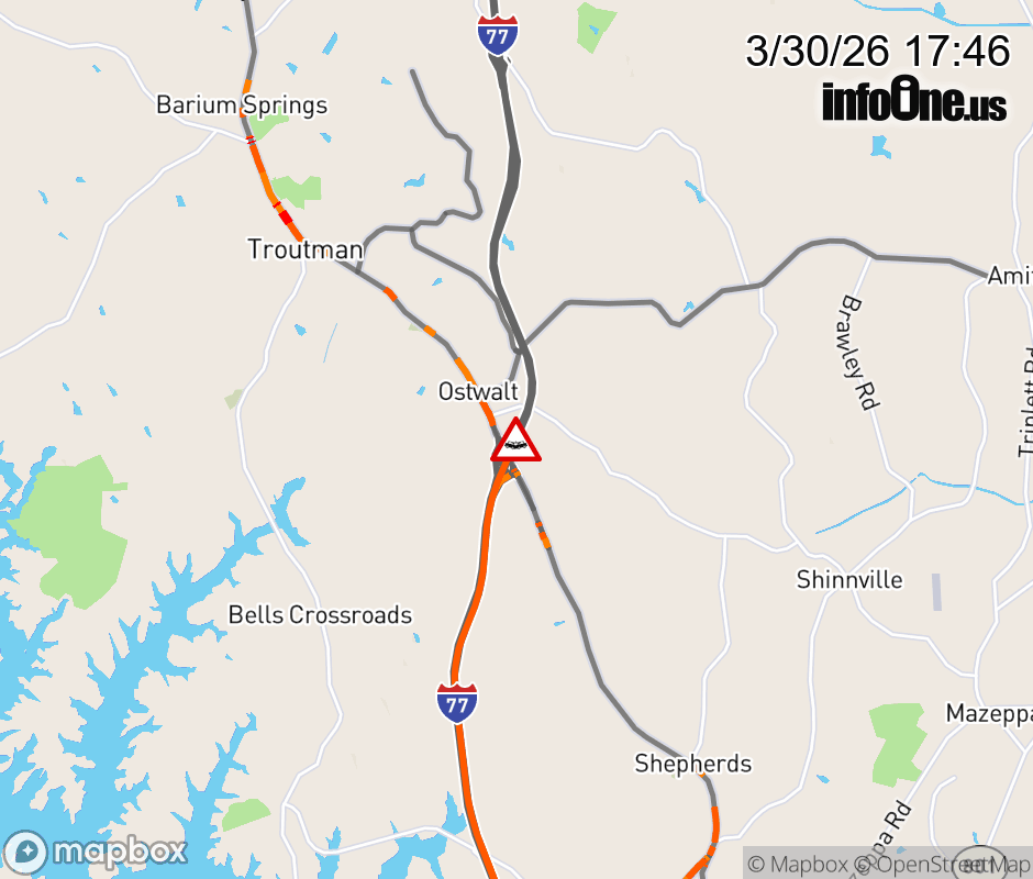 The left lane is closed at Exit 42 (US-21). Updated: Mon 3/30/26 5:46 PM EDT ![]() Updated: Mon 3/30/26 5:46 PM EDT |