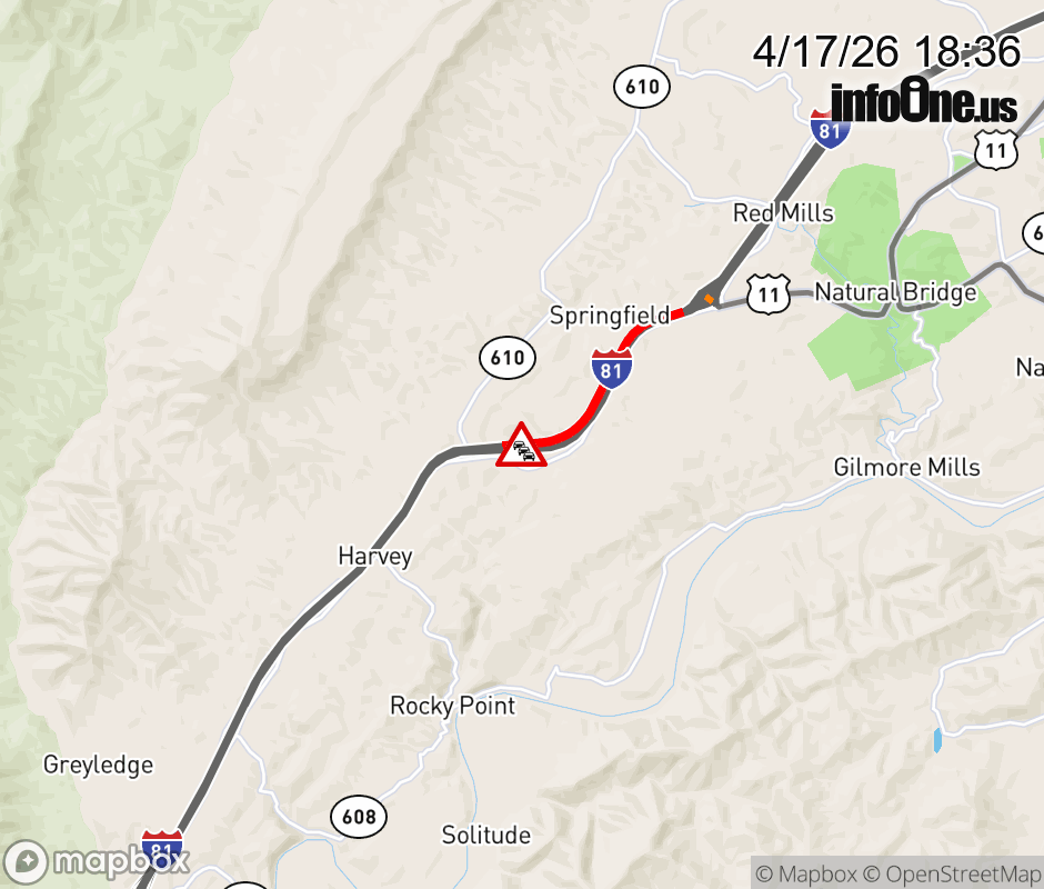 Canceled 4/17/26 6:48 PM Location: I-81S at MM 173.8, VA