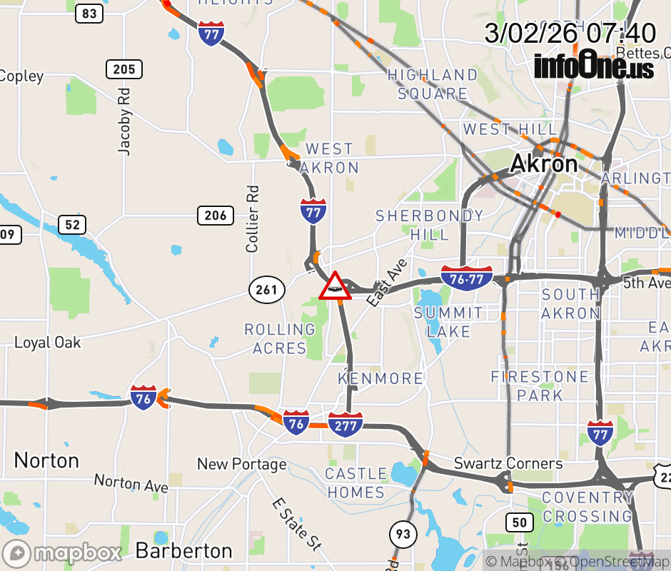The right lane is blocked on I-77 North at I-76, due to a crash. ![]() |