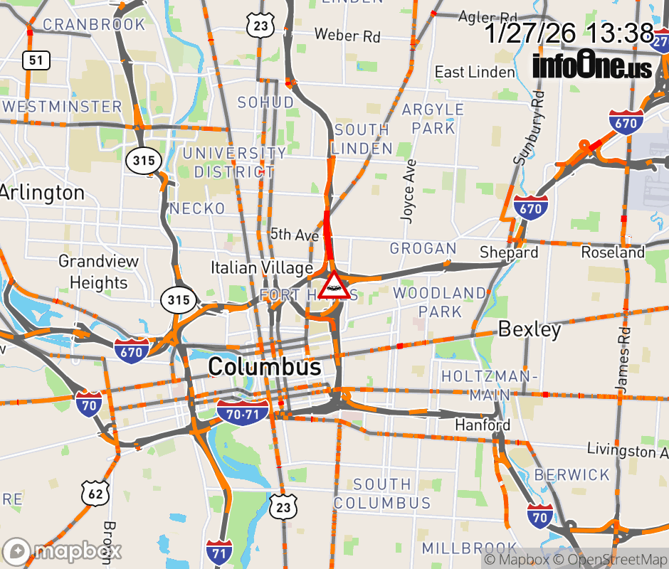 The right lane is closed on I-71 South at Spring St, due to a crash. Updated: Tue 1/27/26 1:38 PM EST ![]() Updated: Tue 1/27/26 1:38 PM EST |