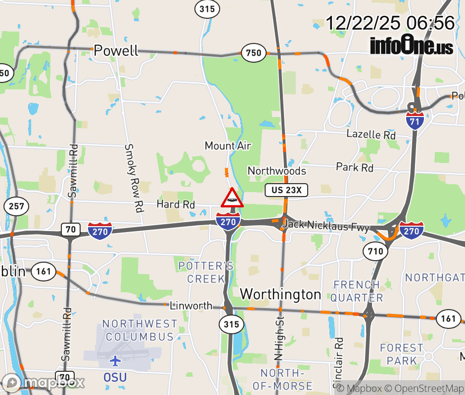 The right lane is blocked on SR-315 South at Olentangy River Rd, due to a crash. ![]() |