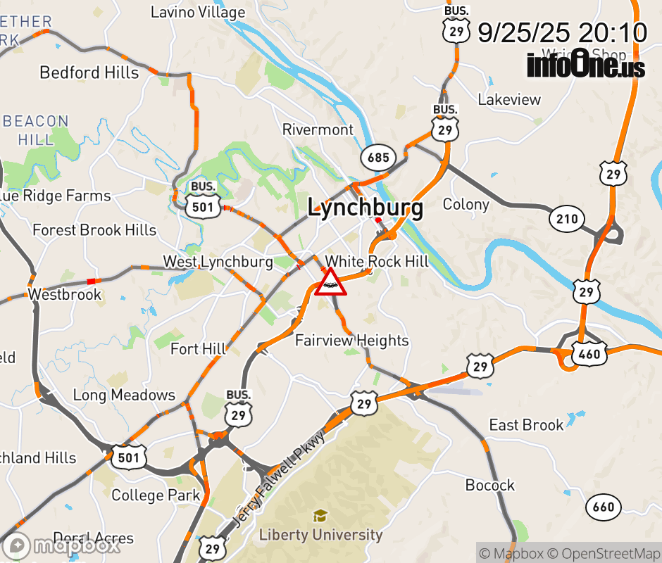 On BUS US-29 South in the City of Lynchburg, in the vicinity of Ramp Intersection, motorists can expect delays due to a vehicle crash. Lane closures exist. ![]() |