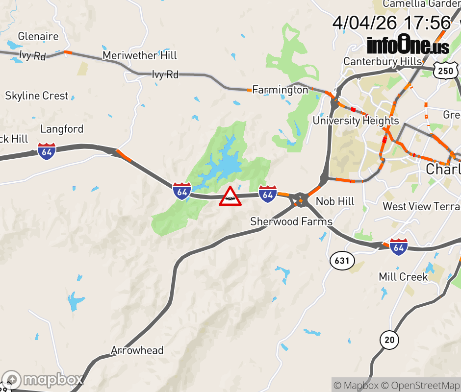 On I-64 at mile marker 116.8 in the County of Albemarle, motorists can expect delays due to a vehicle crash. The west left shoulder is closed. ![]() |
