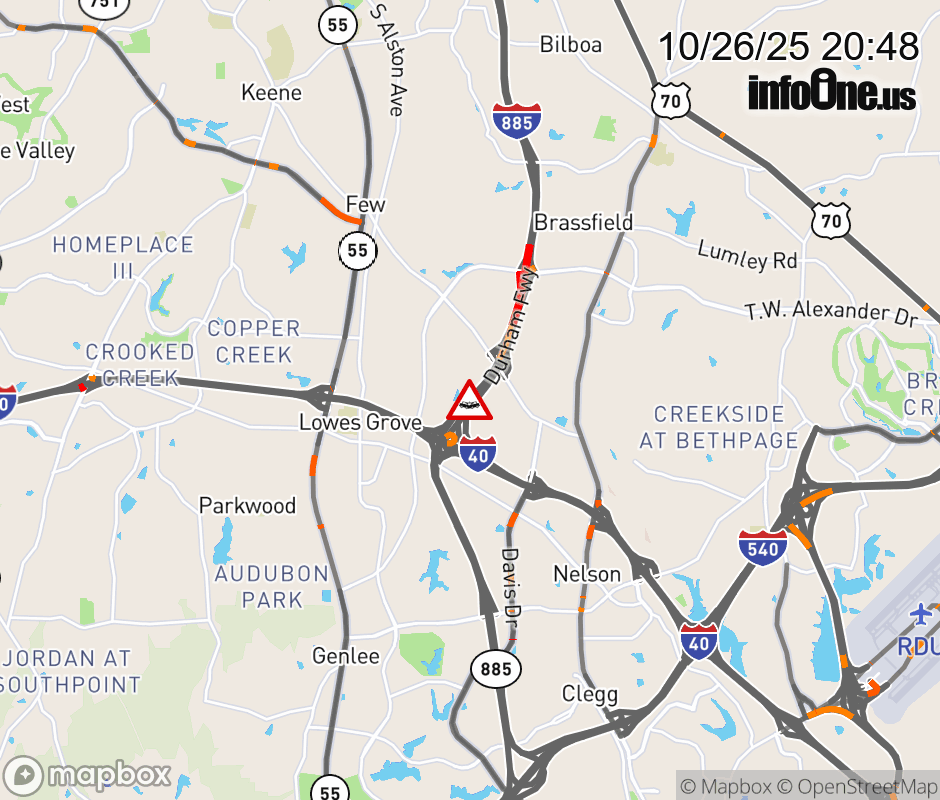 Canceled 10/26/25 10:36 PM Location: I-885S at MM 5, NC Vehicle Crash.