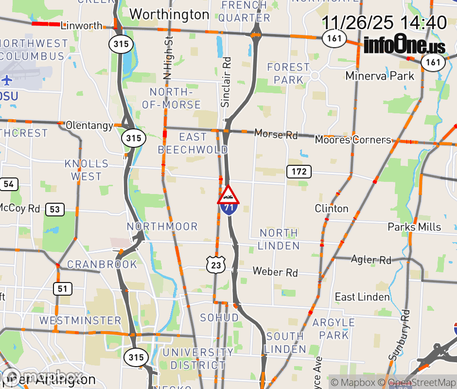 The left lane is blocked on I-71 North at E Cooke Rd, due to a disabled vehicle. ![]() |