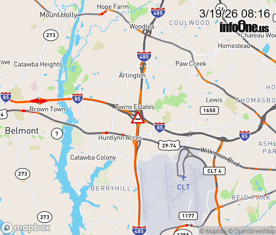 The two right lane is closed at Exit 30 (I-485.). ![]() |