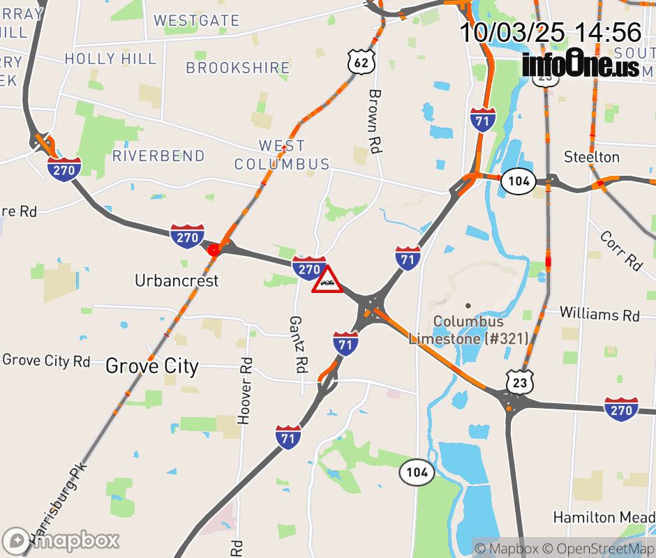 The left shoulder is blocked on I-270 West beyond I-71, due to a disabled vehicle. ![]() |