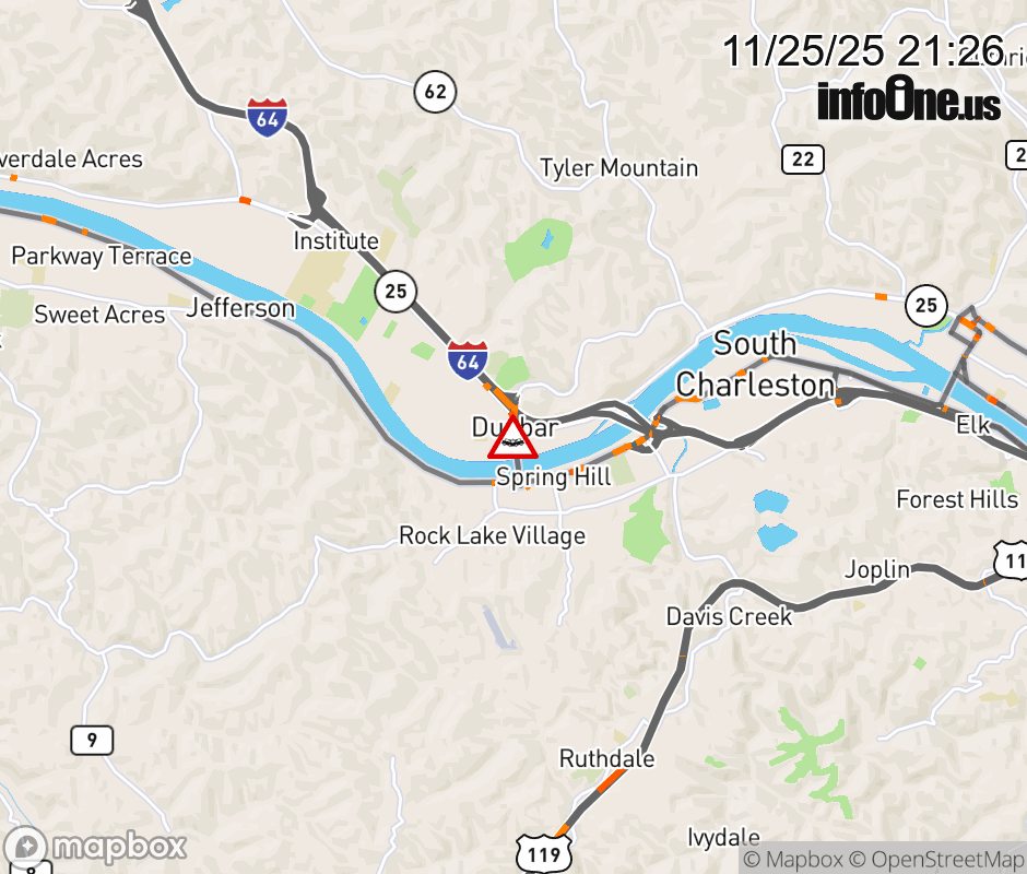 Vehicle Crash on WV 25 (304 10th St, Dunbar). ![]() |