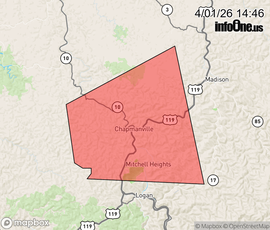 Canceled 4/1/26 3:00 PM Severe Thunderstorm Warning issued April 1 at 2:45PM EDT until April 1 at 3:00PM EDT by NWS Charleston WV At 244 PM EDT, a severe thunderstorm was located near Chapmanville, or 10 miles northwest of Logan, moving east at 30 mph. HAZARD...60 mph wind gusts and quarter size hail. SOURCE...Radar indicated. IMPACT...Hail damage to vehicles is expected. Expect wind damage to roofs, siding, and trees. Locations impacted include... Chapmanville, Chief Logan State Park, Harts, Mount Gay-Shamrock, Mitchell Heights, and Mud. ![]() |