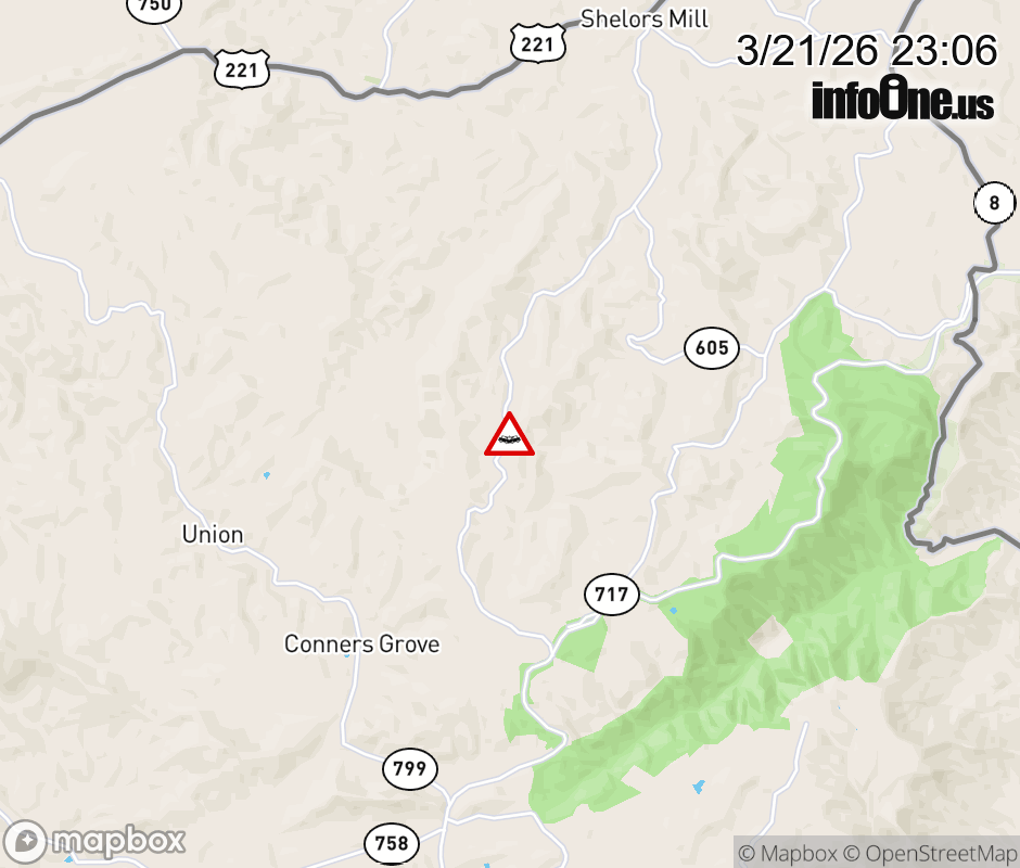 On Rt. 726 North in the County of Floyd, in the vicinity of Emmanuel Rd; Emmanuel Rd SW; Rt. 805E/W (Floyd County), motorists can expect delays due to a vehicle crash. Lane closures exist. Updated: Sat 3/21/26 11:06 PM EDT ![]() Updated: Sat 3/21/26 11:06 PM EDT |