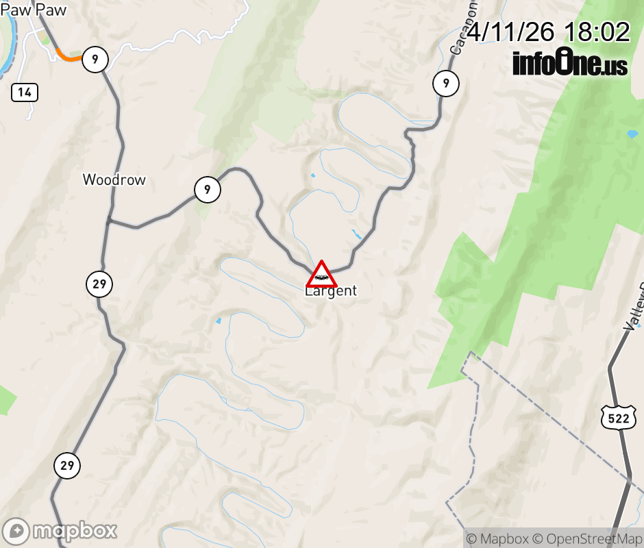 Vehicle Crash on WV-9 (Cacapon Rd.) @ Largent Bridge . The northbound road is closed. The southbound road is closed. ![]() |