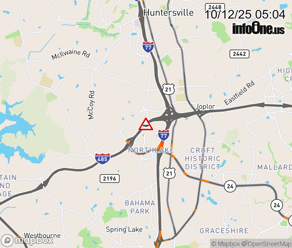 The right lane is closed near Exit 23 (I-77). Updated: Sun 10/12/25 5:04 AM EDT ![]() Updated: Sun 10/12/25 5:04 AM EDT |