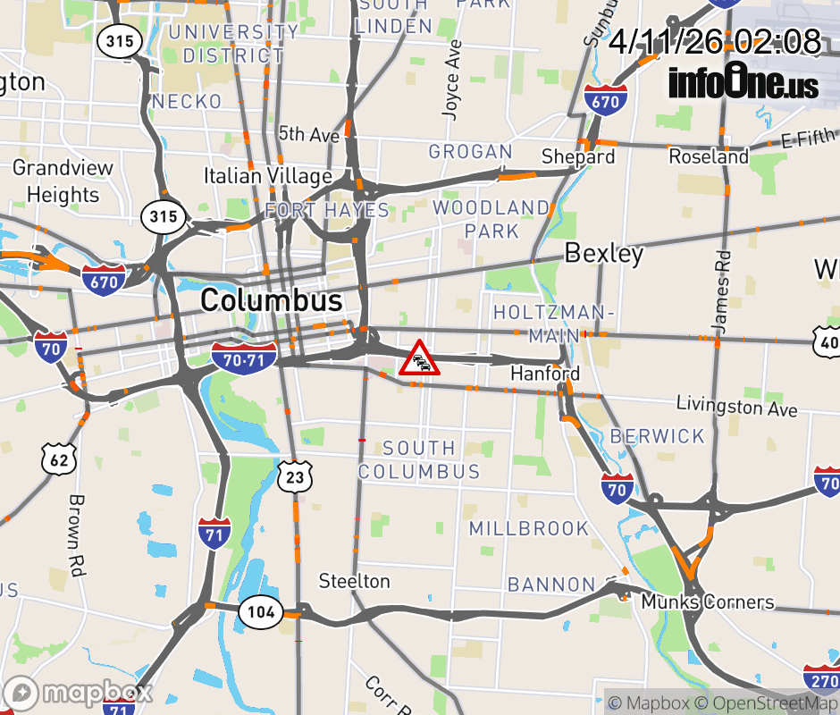 The 2 right lanes are blocked on I-70 East beyond E Fulton St, due to repairs/maintenance.