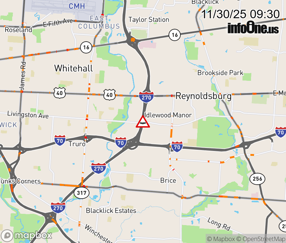 The right lane is blocked on I-270 North Collector beyond I-70 West, due to a crash. Updated: Sun 11/30/25 9:30 AM EST ![]() Updated: Sun 11/30/25 9:30 AM EST |