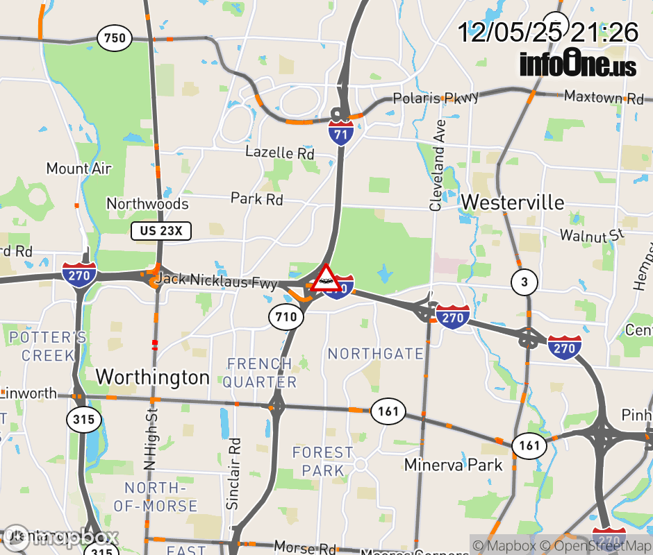 Ramp I-270 West to I-71 North (Northside) CLOSED because of a crash. ![]() |