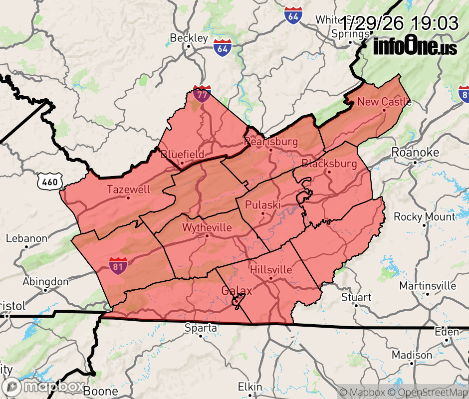 Winter Storm Warning issued January 29 at 7:01PM EST until February 1 at 1:00PM EST by NWS Blacksburg VA * WHAT... Heavy snow expected. Total snow accumulations between 4 and 8 inches. Winds gusting as high as 50 mph. * WHERE... Portions of southwest Virginia and southeast West Virginia. * WHEN... From 7 AM Friday to 1 PM EST Sunday. * IMPACTS... Travel could be very difficult. The hazardous conditions could impact the Friday morning and evening commutes. Gusty winds could bring down tree branches. * ADDITIONAL DETAILS... Strong winds Saturday night into Sunday will result in blowing and drifting snow...reducing visibility at times. ![]() |