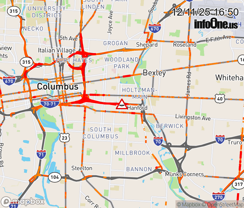 The right shoulder is blocked on I-70 East beyond Miller Ave/Kelton Ave, due to a crash. Updated: Thu 12/11/25 4:50 PM EST ![]() Updated: Thu 12/11/25 4:50 PM EST |