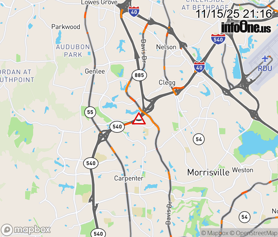 The right shoulder is closed at Exit 67 (NC 885). Updated: Sat 11/15/25 9:16 PM EST ![]() Updated: Sat 11/15/25 9:16 PM EST |
