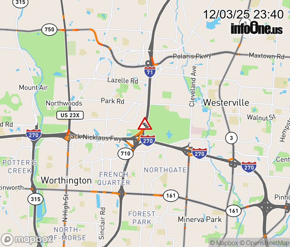 All lanes are closed on I-71 South at I-270 West (North Side), due to repairs/maintenance. Updated: Wed 12/3/25 11:40 PM EST ![]() Updated: Wed 12/3/25 11:40 PM EST |