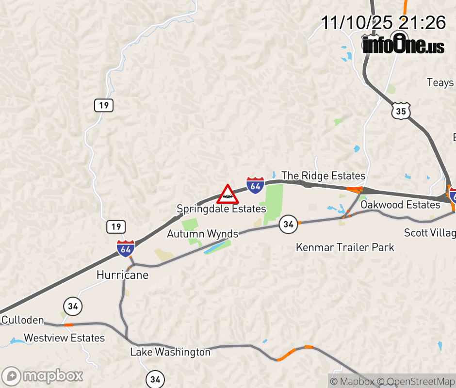 Canceled 11/10/25 11:44 PM Location: I-64 at MM 36.0, WV Accident.