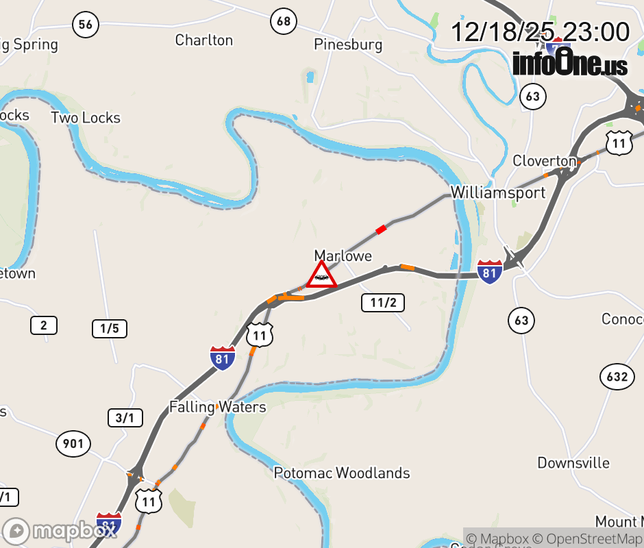 Vehicle Crash on US 11 (9300 Williamsport Pike, Falling Waters). The northbound road is closed. The southbound road is closed. Updated: Thu 12/18/25 11:00 PM EST ![]() Updated: Thu 12/18/25 11:00 PM EST |