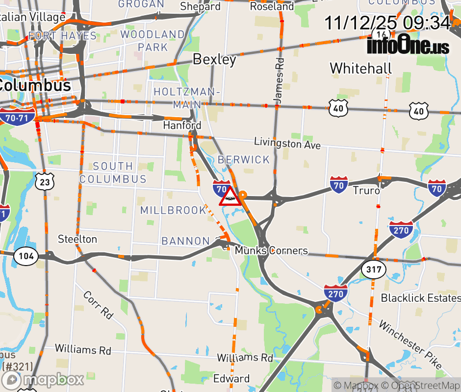 The right shoulder is blocked on I-70 West beyond US-33, due to a crash. Updated: Wed 11/12/25 9:34 AM EST ![]() |