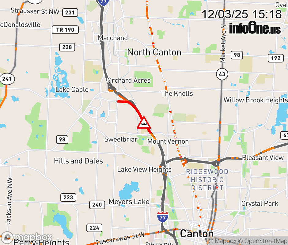 Expect lane closures on I-77 South beyond Everhard Rd/Whipple Ave, due to a crash. ![]() |