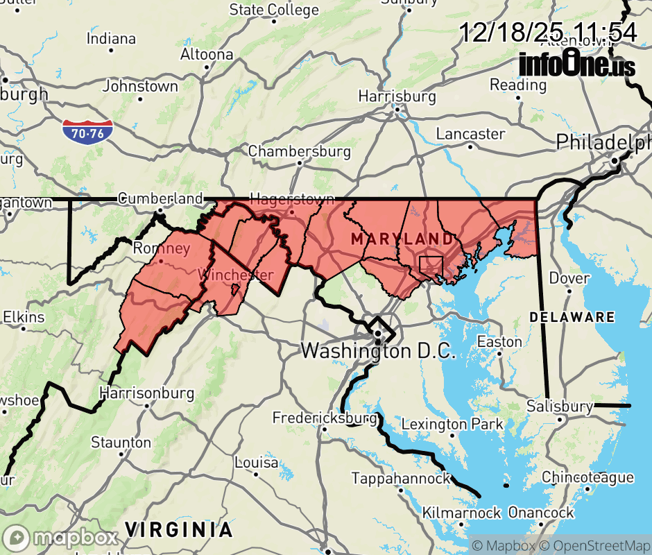 Canceled 12/18/25 8:02 PM Wind Advisory issued December 18 at 11:53AM EST until December 19 at 7:00PM EST by NWS Baltimore MD/Washington DC * WHAT... West winds 20 to 30 mph with gusts of 45 to 55 mph expected. * WHERE... Portions of central, north-central, northeast, and northern Maryland, northwest Virginia, and eastern West Virginia. * WHEN... From noon to 7 PM EST Friday. * IMPACTS... Gusty winds will blow around unsecured objects. Tree limbs could be blown down and a few power outages may result. * ADDITIONAL DETAILS... Gusty winds may persist for several more hours Friday evening. A few gusts to near 60 mph are possible, especially along and just east of higher terrain. ![]() |