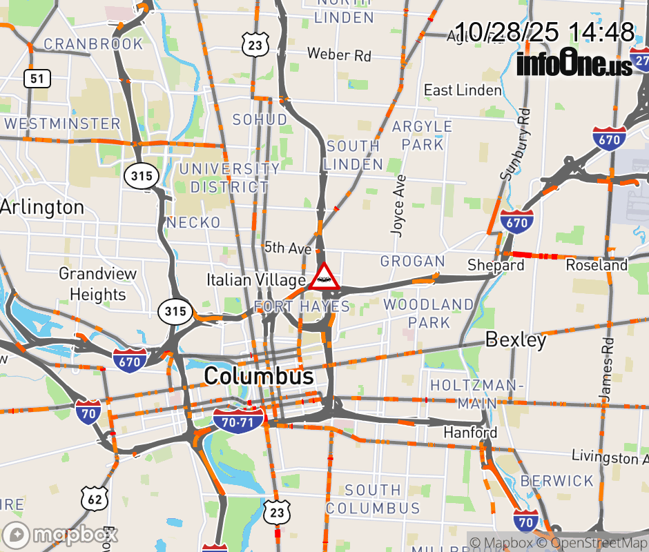 The left lane is blocked on I-71 North beyond I-670 West, due to a crash. ![]() |