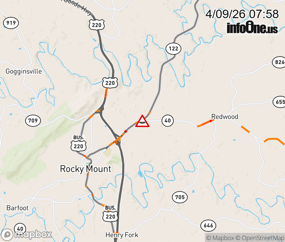 On VA-122 North in the County of Franklin, in the vicinity of Burnt Chimney Rd; Rt. 670E/W (Franklin County), motorists can expect delays due to a vehicle crash. ![]() |