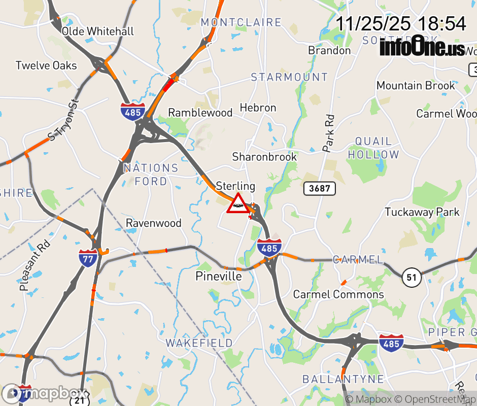 The right shoulder is closed at Exit 65 B (I-77). Updated: Tue 11/25/25 6:54 PM EST ![]() Updated: Tue 11/25/25 6:54 PM EST |