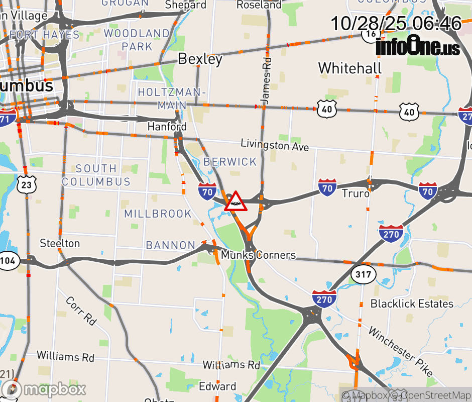 The left shoulder is blocked on I-70 West beyond US-33, due to a crash. ![]() |