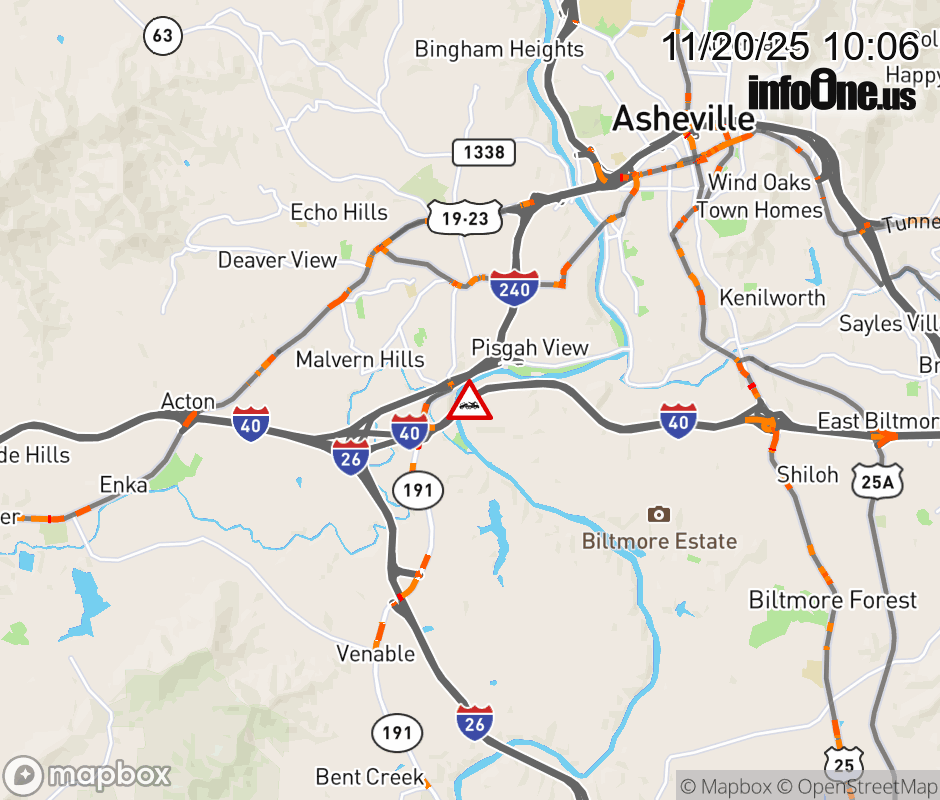 The right lane is closed after Exit 47, NC 191, (Brevard Road). ![]() |