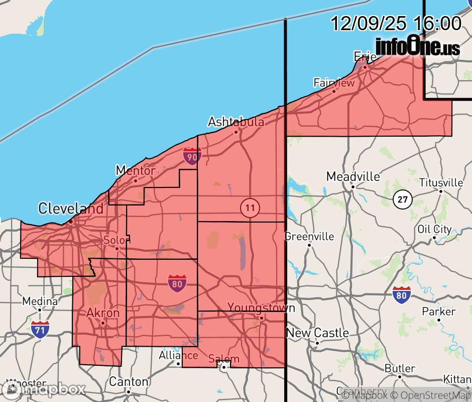 Canceled 12/9/25 10:00 PM Special Weather Statement issued December 9 at 3:57PM EST by NWS Cleveland OH A burst of wet snow is expected late tonight and early Wednesday morning, with precipitation becoming lighter and changing to mainly rain by later Wednesday morning as temperatures warm. Snow rates are expected to be heaviest during the morning commute. Wet snow accumulations of 2 to 3 inches are expected across the higher elevations of eastern Cuyahoga County, northern Summit County, southern Lake County, Geauga County, northern Portage County, inland Ashtabula County and northern Trumbull County. Lighter accumulations of under 2 inches of slushy snow are expected across the lower elevations and closer to Lake Erie, including in the cities of Cleveland, Akron, Youngstown, and Erie. A period of slushy and slick road conditions may impact the Wednesday morning commute. The greatest impact will be in the higher elevations. Plan on giving yourself extra time to reach your destination if traveling early Wednesday. ![]() |
