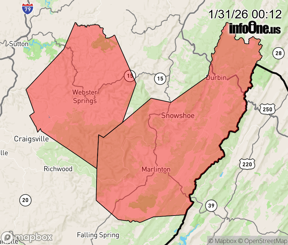 Canceled 1/31/26 11:00 AM Cold Weather Advisory issued January 31 at 12:10AM EST until January 31 at 11:00AM EST by NWS Charleston WV * WHAT... For the Cold Weather Advisory, very cold wind chills as low as 15 below. For the Extreme Cold Warning, dangerously cold wind chills as low as 26 below expected. * WHERE... Southeast Pocahontas and Southeast Webster Counties. * WHEN... For the Cold Weather Advisory, until 11 AM EST this morning. For the Extreme Cold Warning, from 7 PM this evening to 1 PM EST Sunday. * IMPACTS... Frostbite and hypothermia may occur if unprotected skin is exposed to these temperatures. ![]() |
